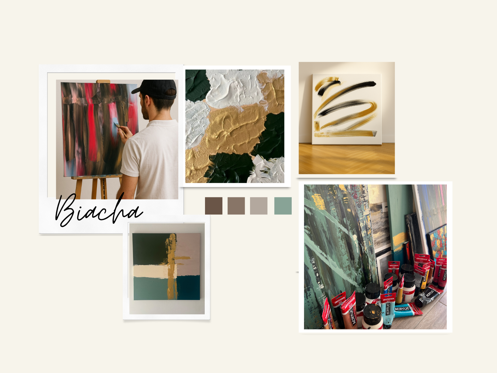 Biacha est un artiste peintre passionné qui réalise des tableaux modernes et uniques peints à la main sur toile, en lissage ou en relief.